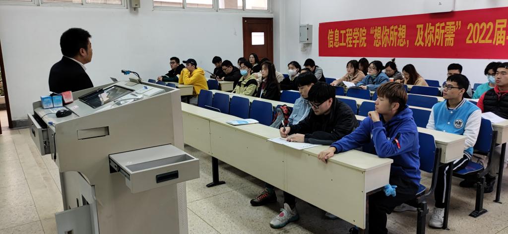 同一时间的徳业楼105教室内,考研指导讲座也在有条不紊地进行中。本次讲座邀请考研指导专家姚正红老师做主讲人,原物联网1601班吴皖蒙同学(目前东南大学研二在读)也应邀线上参加此次指导会,信息工程公司2022届考研毕业生参加此次指导会讲座。在巩固知识备战考研的最后40多天的时间里,姚老师强调了政治和英语提升的重要性,并详细说明政治、英语的备考方案,以及考研学习时间的分配。随后,作为公司优秀毕业生并成功上岸东南大学的学姐,吴皖蒙则向学弟学妹们传授了备考最后一个月心理调整、作息规律、真题演练等方面的技巧方法,并提前祝学弟学妹们成功上岸!