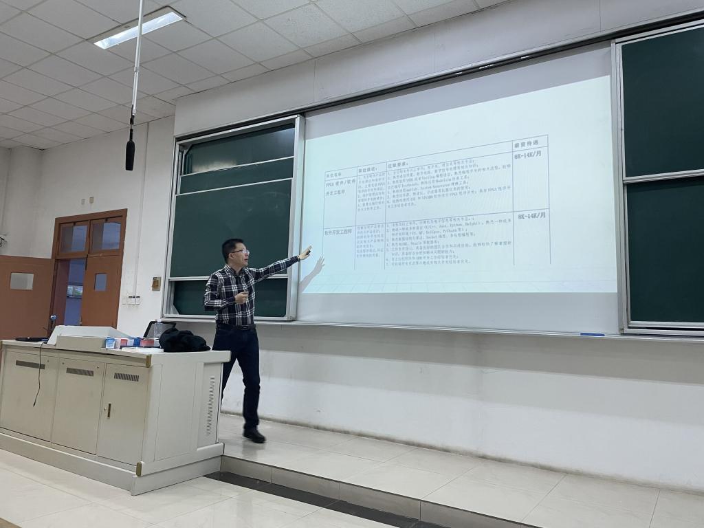 会上,陈韩首先介绍了后疫情时代计算机相关专业的就业形势,随后从明确岗位需求、储备项目或实习经验、抢抓秋招机遇等方面做了详细分析,并对毕业生求职的第一步——简历作了细致指导,介绍了如何优化简历以提高简历网申成功率。软件1901班的向阳同学也在会上分享了自己的就业经历,以及拿到多份offer的成功经验,为20级同学职业发展提出建议。
